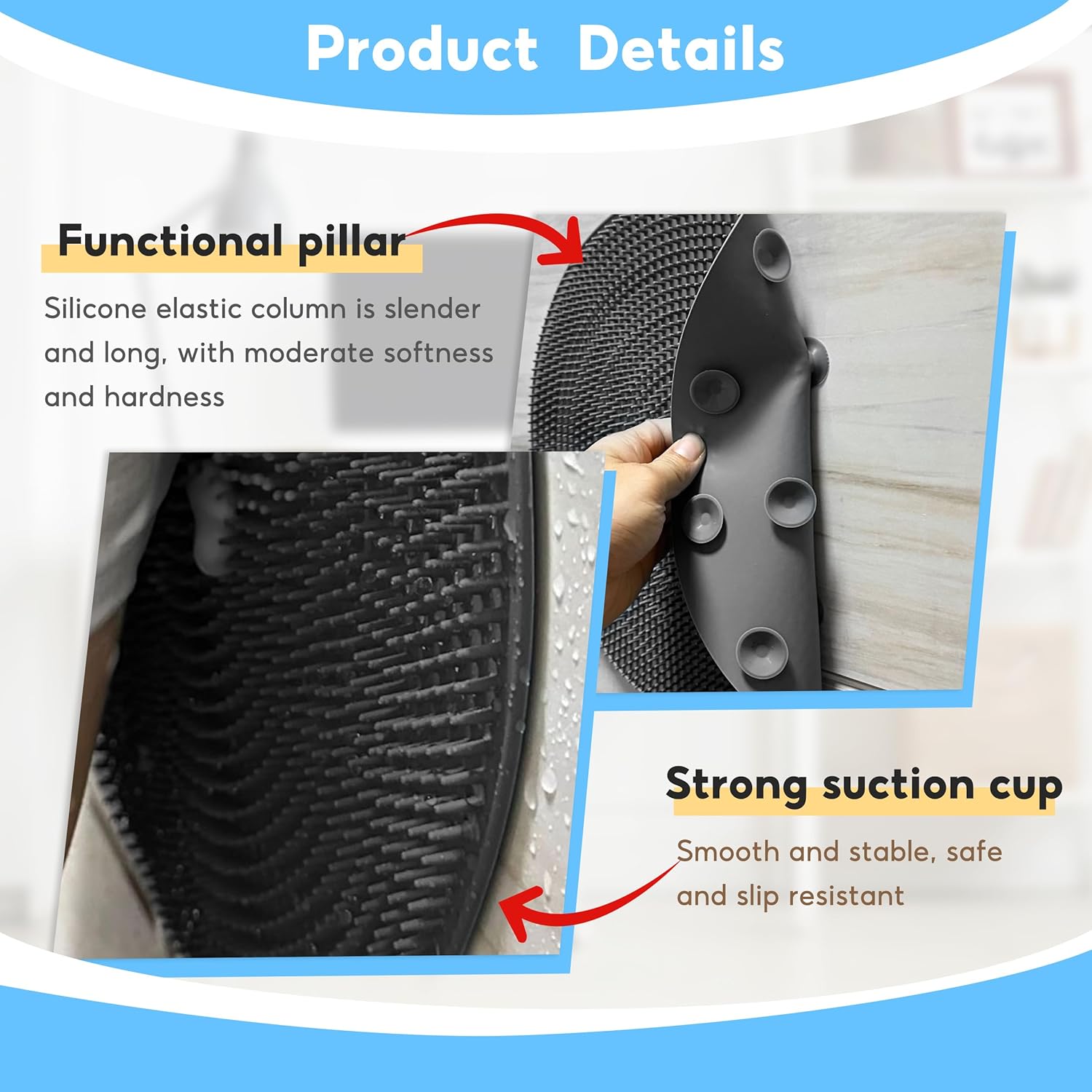 • Powerful Suction Cup: The foot scrubber for shower floor has a larger area of powerful suction cup, Each powerful suction cup can provide strong adsorption force (please use it on flat and smooth tile floors and walls)